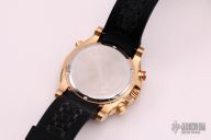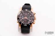 Rose gold-plated stainless steel case with a black rubber strap. Uni-directional rotating black ion-plated bezel. Black dial with rose gold-plated skeleton hands and index hour markers. Minute markers. Tachymeter around the inner bezel. Dial Type: Analog. Luminescent hands and markers. Date display between 4 and 5 o'clock positions. Chronograph - four sub-dials displaying:60 minute, 12 hour, 1/10 second and 1/1000 second. Quartz movement. Scratch resistant sapphire crystal. Screw down crown. Solid case back. Case diameter: 47.5 mm. Case thickness: 14 mm. Round case shape. Band width: 24 mm. Tang clasp. Water resistant at 200 meters / 660 feet. Functions: chronograph, tachymeter, date, hour, minute, second. Casual watch style. Bulova Precisionist Chronograph Black Dial Black Rubber Men's Watch 98B211.