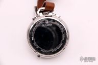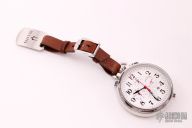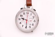 Stainless steel case with a brown leather strap. Fixed stainless steel bezel. White dial with black hands and Arabic numeral hour markers. Minute markers around the outer rim. Dial Type: Analog. Date display between the 4 and 5 o'clock positions. Chronograph - four sub-dials displaying: 60 minute 12 hours, 1/1000 of a second, and 1/10th of a second. Quartz movement. Scratch resistant mineral crystal. Pull / push crown. Solid case back. Case size: 56 mm. Round case shape. Tang clasp. Water resistant at 30 meters / 100 feet. Functions: chronograph, date, hour, minute, second. Dress watch style. Bulova Chronograph White Dial Men's Pocket Watch 96B249.