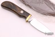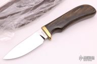 This 159 Skinner by Smith & Wesson features a mirror polished drop point blade with 0.231" blade stock and .996" blade depth. The handle is comprised of a brass guard and wood grip over hidden tang construction. Includes leather sheath with belt loop. Comes with original box and papers. Excellent condition. #09628