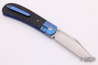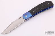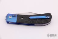 This Lanny's Clip Front Flipper by Enrique Pena features a satin finished blade with a front flipper and notched thumbrest. The handle has titanium bolsters, marbled carbon fiber scales with a titanium backspacer and matching tip up pocket clip.   After market anodization.  Includes a Pena X-Series padded box.  Excellent Condition.