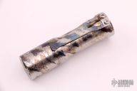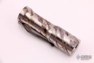 Deadwoods Custom Works Huckleberry Flashlight finished in Digicam by Strider Knives. Full Titanium body, and machined pocket clip. Rear body clicker for on/off and green/white light engagement. 5000k white light output by a CWF Dragon Driver and LED emitter array. Programmable.