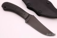 Like most items in the Winkler Knives product line, the WK Crusher Belt Knife was designed to meet the needs of an active duty Special Operations Team. A group from Naval Special Warfare familiar with the uncompromising performance of the WK Belt Knife wanted the same attributes in a knife with glass breaking capabilities. This is it. The rounded, integral extended tang meets the need and is comfortable to carry. Knife Specifications Blade steel: 80CrV2 Black oxide no-glare finish Blade length: 4 1/2" Overall length: 9 1/2" Blade thickness: 3/16" Full skeletonized tang Thumb index file work Sheath Lined Kydex® with leather cover Designed for multiple carry options. Excellent condition. Comes with original box, papers and black leather sheath with clip. Excellent condition.