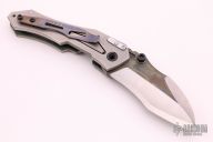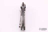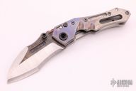 This M250 Cobra M5 from Dwaine Carrillo features a satin finished blade with temper finished flats, notched thumbrest and dual thumbstuds. "Iron Rhino" and "CD-250RGB" and "UBOLT" and "M5" milled into the blade. The handle has a titanium frame with anodized front and stonewashed lockside, aluminum backspacers, tip up titanium clip that has an anodized pattern. Comes in a padded Pelican case. Excellent condition.