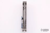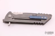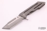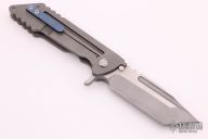 This Kickstand flipper from DSK Tactical Knives features a two-tone tanto blade with notched thumbrest and flipper. The handle is constructed of tumbled titanium with an anodized pocket clip tip up carry. Blade is centered when closed, flips well with no wrist action needed, and locks up with no play. Comes with original box and papers. Excellent condition.