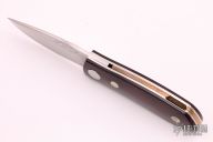 Barry Wood's interest in knives came about because of his love of the sea and sailing. Barry wanted to make a knife that was strong and could be opened with one hand. He was an engineer and his engineering experience contributed to both his pattern designs and the designs and refinements of the interesting opening/closing mechanism that contributed to his notoriety and popularity. Because of his unique opening/closing mechanism, Barry's knives have been referred to by various names, such as "swinglock", "swivel knife", "rotating folder", "wood lock" and others. Barry began making knives in his garage/workshop in Venice, CA, and he began selling knives in 1967. Barry's interesting folding knives attracted the attention of Colt Firearms, who commissioned him to produce the Colt Tuckaway Folder. Patterned after Barry's Mk.1, the "Tuckaway" remains the most unusual of Colt's knives. The "Tuckaway" was introduced in 1969 and production continued through 1978. Barry passed away in 2014.