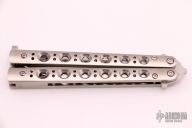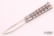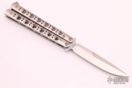 This Model 62 Balisong by Benchmade features a stonewashed spear point D2 blade with a false top edge. The handle has stainless steel handles and latch. Excellent condition. First Production Run #88 of 300. Comes with original box, sheath and papers.