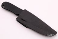 This is a Large Frequent Flyer from Mad Dog Knives. It features a clip point blade. Blade and handle are black G-10 and non-magnetic; .375" thickness. 1.36" blade depth. Fits well in the hand. Includes a kydex sheath. Excellent Condition.