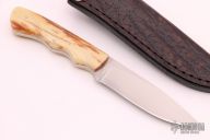 "I made my first knife in 1978 out of a saw blade, at that time I was a teacher at a technical school. I started making knives on a regular basis in 1991 and became a full time maker in 1996. I like to work with different ivory (legal), especially mammoth and warthog ivories. I work with steels like ATS34, 12C27, Damasteel and other Damascus. I live in South Africa and did my first show in the USA in 1996 and visit the States to do about 8 shows per year. I have been a member of the South African Knifemakers Guild since 1994. I make fixed blades as well as folders."
