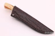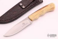This Cheetah by Arno Bernard features a hand rub satin finished drop point blade, .128" blade stock and 1.090" blade depth, full tapered tang construction. The handle has giraffe bone scales. Comes with a brown leather sheath. Excellent Condition.