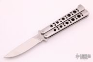 This is a Model 10 Bali-Song with a plain edge blade and swedge. The handles are stainless steel with a T-latch. Comes with original sheath. Has some scratches and dings, has been resharpened, has a nick in the blade, fair condition.