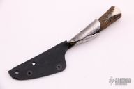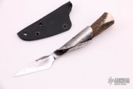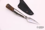 This Kiridashi by Fred Perrin features a hand forged blade with visible temper line, .147" blade stock and .613" blade depth, the handle is stag. Comes with a kydex sheath. Has a few light scratches, excellent condition.