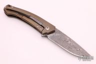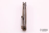 This version of the Arvenis has a handle made from milled titanium, with Damasteel inlays. With inlays made from the same material as the blade. For it this Damasteel with Vinland pattern was namely also used. Top-quality Damasteel from Sweden, made from two good types of powdered steel. You can quickly open the blade with the flipper. To lock it you can use the titanium framelock with steel insert.