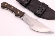 "These knives were formally known as the original "TRACKER" knives from the registered trademark, which I was the first to own & stamp on my blades during the '90's. After a brief retirement & the release of the 2003 Paramount Pictures film "The HUNTED" in which my Model "C" TRACKER knives were used & displayed, I resumed making my original TRACKER knife patterns but changed the name to avoid questionable trademark right disputes. In 2003 I was the first to coin the name "WSK" or Wilderness Survival Knife to this design. With over 22 years of refinement from personal service, feedback from customers & extensive field testing & use by top survival instructors & Elite military from around the world, my WSK knives have evolved into perfection & have repeatedly proven themselves in the field from real world survival to combat in many of our country's latest conflicts. Today you will see many variations by other makers but none can match the history, function & performance of my knives which are still the standard by which all others are judged. All the WSK knives I offer continue to be individually hand-crafted by myself from the contouring of the blades to the hand cut saw teeth to ensure the highest degree of craftsmanship & performance. Each blade is crafted from high carbon tool steel & skillfully deferentially hardened & tempered for superior edge holding & blade resilience. Handle grips are permanently fastened by stainless steel Loveless bolts with solid brass nuts, lined lanyard hole and guaranteed never to loosen under the hardest use. My sheaths are personally crafted for a custom fit from heavy leather that's been double stitched & finished for long wear. My field-grade knives retain all the same quality construction, differential heat treatment & performance as my high grade collectible knives but come with less costly cosmetic refinements for more practical field use."