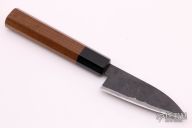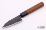 The Mini Petit knife is traditionally used as a paring knife or all-purpose small kitchen knife. The blade is Stainless Clad Aogami Super Steel (NAS) which is a high-carbon steel alloy with vanadium. As with all of Takeda's knives, it has a strong sharp edge. The octagon shaped wood handle is easy to hold. 85mm cutting edge. Comes with original box and papers. New condition.