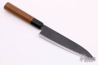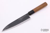 The Petit knife is traditionally used as a paring knife or all-purpose small kitchen knife. The blade is Stainless Clad Aogami Super Steel (NAS) which is a high-carbon steel alloy with vanadium. As with all of Takeda's knives, it has a strong sharp edge. The octagon shaped wood handle is easy to hold. 155mm cutting edge. Comes with original box and papers. New condition.