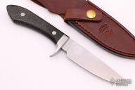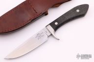 This Sendero Classic from White River Knife and Tool features a tumble finished blade with notched thumbrest, .125" blade stock and 1.088" blade depth, hidden tang construction. The handle has a stainless steel guard and black burlap micarta grip. Numbered #1319 on the ricasso. Includes a brown leather sheath, original box and papers. Excellent condition.