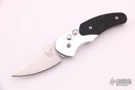 This 3150 Impel Automatic by Benchmade features a drop point blade with swedge. The handle is comprised of an aluminum frame with black G10 overlays. Push button and sliding safety on "A" side of handle The polished steel pocket clip is positioned for tip down carry. Has a couple light scratches, otherwise excellent condition. Includes original box and drawstring pouch.