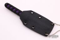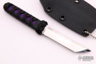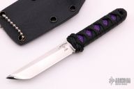 This fixed blade by Johnathan Mcnees features a satin finished tanto blade with hidden tang construction, .169" Blade Stock .607" Blade Depth. The handle was wrapped by Sam Eddleman with purple stingray skin under black wrap. Comes with a kydex neck sheath and zippered case. Excellent condition.