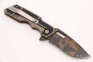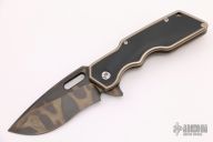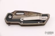 This Mark 1 Flipper by A2D Mercantile features a recurve blade with thumbhole and flipper. The handle has an anodized titanium frame with black G-10 inlays, titanium tip up clip. Nice detent, lockup and blade seating. Comes with original drawstring bag. Excellent condition.