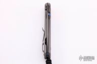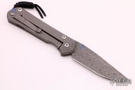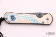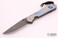 This large Sebenza 21 from Chris Reeve Knives features a Chad Nichols Stainless Rain Drop Damascus blade with a unique milled and anodized titanium frame with opal mosaic triplet and lanyard in pommel. Includes original box, leather sheath and paperwork dated August 28, 2018. Excellent condition.