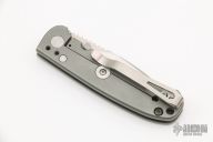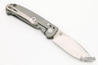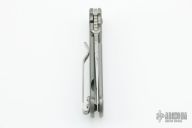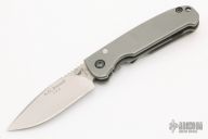 This Small Acies by AG Russell features a satin finished drop point blade with notched thumbrest and dual thumbstuds. The handle has a bead blasted titanium frame, lockbar stabilizer, tip up or down reversible stainless steel clip. Nice detent, lockup and blade seating. Has some scratches and a little staining on the blade, otherwise good condition.