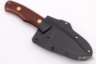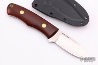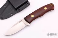 The Model 2, by Dan Crotts, features a drop point style blade with a full tang construction. 128" blade Stock. 1.01" blade depth. The handle has cocobolo scales with brass pins and lanyard tube. Includes kydex sheath. New from maker.