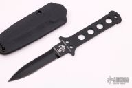 This Bad Intent USN Dagger by Emerson knives features a black double edged chisel ground blade, .130" blade stock and .746" blade depth, full tang construction. Comes with a kydex neck sheath. " USN 078" on back of blade. Has some sheath marks on the blade, otherwise excellent condition.