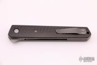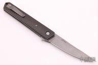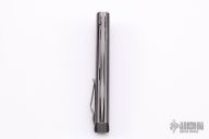This Kwaiken Flipper by Lucas Burnley features a tumble finished blade with swedges on the spine and notched flipper. The handle has lightning strike carbon fiber scales, tumble finished titanium liners, backspacer and tip up clip. Nice detent, lockup and blade seating. Rides on IKBS. Excellent condition. Comes with a velcro case.