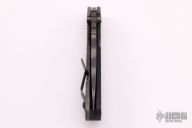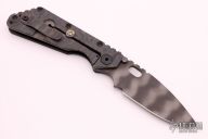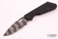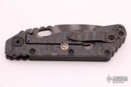 This SMF framelock folder by Strider features a tiger stripe blade and a black G-10 flamed titanium frame and tip up titanium clip. Includes a "Lock Bar Stabilizer" for maximum reverse lock retention. Nice detent, lockup and blade seating. Has a few scuffs, otherwise excellent condition.