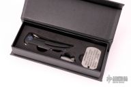- Comes with a titanium pivot tool and a titanium dog tag engraved with the features of the knife.