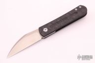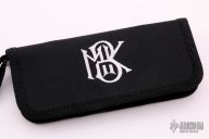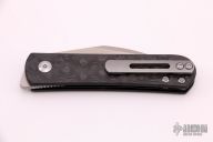 This MBK Slayback by Monterey Bay Knives is a Ray Laconico design, it features a satin finished blade with notched front flipper. Has double detent system. Has EWC carbon fiber scales with stainless bedded liners, tip up titanium clip. Comes with zippered case. Excellent condition.