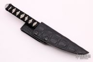 This Kwaiken by Chuck Gedraitis features a blade with hamon and false top edge, .106" blade stock and .662" blade depth. The handle has black over white cord wrap. Comes with a leather covered kydex sheath and zippered case. Excellent condition.