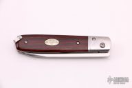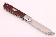 The Gentleman's Pocket Knife, by Fallkniven features a laminated cobalt steel drop point blade. The handle has stainless steel bolsters, cocobolo scales, Fallkniven's signature 3 crown oval shield is inlaid in the handle. There is a steel shackle at the butt of the knife for the purpose of attaching a lanyard. Excellent condition.