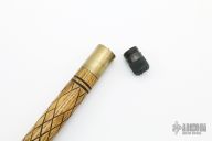 This Long Axe/Tomahawk by Joe Szilaski features a satin finished head with filework and contouring on the spike. Has a wooden handle with fluting and checkering, brass butt with steel screw in butt cap. Comes with cloth pouch. Excellent condition.