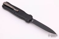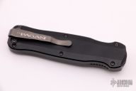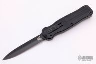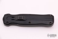 The Pagan from Benchmade features a black, chisel ground spear point blade. The handle is comprised of milled and black coated aluminum. Includes original box, papers and MOLLE compatible nylon sheath. Shows some wear on the blade, deploy switch, and frame in otherwise good condition.