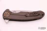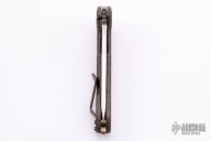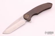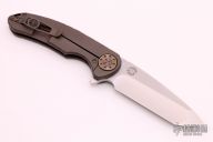 This Large F3 by Curtiss Knives features a stonewashed blade with notched thumbrest and flipper. The handle has an anodized and tumbled titanium frame with a matching tip up titanium clip. Blasted titanium hardware. Rides on bearings, nice detent and lockup. Comes with COA dated 3-6-18 and zipper case. Has some light scuffs and scratches, otherwise excellent condition.