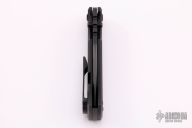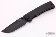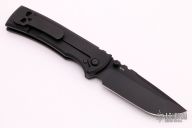 This Chaves Ultramar Redencion Tanto features a black finished blade with the Chaves logo. The handle is made up of black PVD coated titanium show and lockside, skull pocket clip (positioned for tip up carry), and matching titanium backspacer. Blade is centered when closed, and locks up with no play. This piece is in excellent condition with no signs of use or carry. Comes in the original packaging.