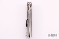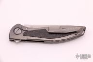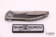 This Neon CD NL by Shirogorov features tumbled blade with notched thumbrest and flipper. The handle has a milled and tumbled titanium frame with fat carbon inlays, tip up titanium clip with hidden screws, titanium backspacer with lanyard hole. Comes with original box and papers dated 2021. Rides on RBS. New from maker at the 2021 Nashville Custom Knife Show.