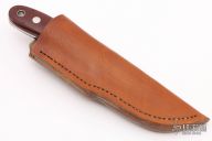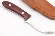 This Skinner by John Shore features a mirror polished blade with .136" blade stock and .928" blade depth, full tapered tang construction with red linen micarta scales. Comes with a brown leather sheath. New from maker at the 2021 Nashville Custom Knife Show.