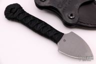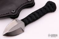 This Custom ArrowTac by Bastinelli Knives features a Chisel ground double edged blade with fuller, .183" Blade Stock. 1.506" Blade Depth. The handle has black cord wrap over black cord under wrap. Comes with a black leather sheath by Chattanooga Leather Works, and a zippered case. New From maker at the 2021 Nashville Custom Knife Show.