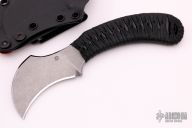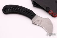 This Custom Tripovan by Bastinelli Knives features a stonewashed blade with notched thumbrest, .179" Blade Stock. 1.343" Blade Depth. The handle has black cord wrap over black G-10. Comes with a kydex sheath and a zippered case. New From maker at the 2021 Nashville Custom Knife Show.