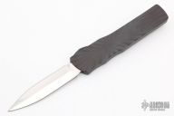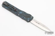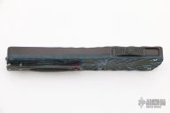 This Twist Tighe OTF by Brian Tighe features a hand rub satin finished double-edged dagger blade. The handle has a milled and DLC coated titanium front, fat carbon back, tip up titanium clip with ruby ball insert, has ruby ball insert in the butt as a glass breaker, has a carbon fiber thumb slide. Comes with a zippered case. New from maker.