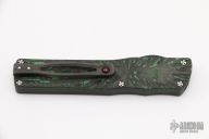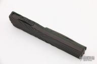This Small Twist Tighe OTF by Brian Tighe features a hand rub satin finished double-edged blade. The handle has a milled and DLC coated titanium front, fat carbon back, tip down titanium clip with ruby ball insert, has ruby ball insert in the butt as a glass breaker, has a carbon fiber thumbslide. Comes with a zippered case. New from maker.