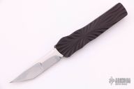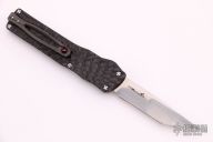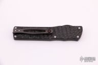 This Small Twist Tighe OTF by Brian Tighe features a hand rub satin finished tanto blade. The handle has a milled and DLC coated titanium front, carbon fiber back, tip down titanium clip with ruby ball insert, has ruby ball insert in the butt as a glass breaker, has a carbon fiber thumb slide. Comes with a zippered case. New from maker.