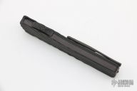 This Small Twist Tighe OTF by Brian Tighe features a hand rub satin finished tanto blade. The handle has a milled and DLC coated titanium front, carbon fiber back, tip down titanium clip with ruby ball insert, has ruby ball insert in the butt as a glass breaker, has a carbon fiber thumb slide. Comes with a zippered case. New from maker.