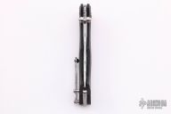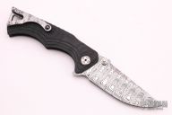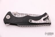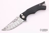 This Small Tighe Fighter from Brian Tighe features a Damasteel blade with swedge, dual thumb studs, notched thumbrest and flipper. The handle is comprised of a machined black G-10 frame over a notched Damasteel backspacer, Damasteel tip up pocket clip with ceramic ball inset. Comes with zippered case. New from maker.