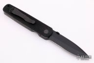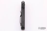 Ernie Emerson says "Symmetry, Grace, and Power. These three words describe the Emerson Model A100 knife perfectly. When I first started making knives, before “Tactical”, I was making this pattern. I liked it then just as much as I like it now. This knife became the archetype from which all of my other designs have evolved . It is the “Father” of all my tactical designs. In fact it might be the “Grandfather” of all tactical knife designs that now exist. It’s simple, it works, and it never gives up. See for yourself." This knife has a black spearpoint blade with thumbdisc. The handle has textured black G-10 scales, titanium liners, black G-10 backspacer and a tip up black stainless steel clip. S/N 1342 and dated 2013. Excellent condition. Comes with original box and papers.