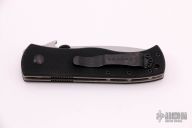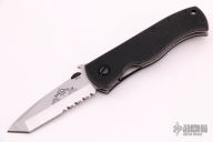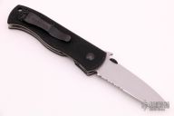 This CQC-7 from Emerson features a stonewashed partially serrated chisel ground tanto blade with notched thumbrest, thumbhole and wave feature. The handle has black G-10 scales, titanium liners, black G-10 backspacer, and a tip up black stainless steel clip. Nice detent, lockup and blade seating. Excellent condition. Comes with original box and papers.