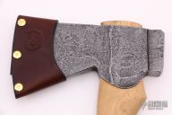Our axes are hand forged from a block of 4142 chrome/moly alloy steel in the Blue Ridge mountains on the Western North Carolina, Eastern Tennessee line and heat treated to 55HRC. The heads are hung on straight grained hickory handles made from cabinet grade kiln dried lumber. Each handle is hand fitted with a drawknife. The Farm Axe has a head weight of 2.25 pounds and a handle length of 19 inches. This axe is an excellent choice for those who want a full size felling axe which can be taken out to fell and buck a tree on the property, or split your wood for the winter. The poll is hardened so it can be used as a proper hammer to drive large stakes in the ground, budge implements, or drive splitting wedges. Sheaths are hand made with thick vegetable tanned water buffalo leather. 100% made in house. Overbuilt and ready to use, because overkill never fails. New from maker.