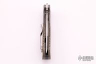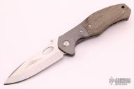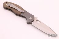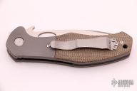 This custom CQC-10 by Ernie Emerson features a hand-ground satin finish blade, dovetailed bead blast titanium bolsters and liners, green canvas micarta scales, black G-10 backspacer, and tip up stainless steel clip. Thumbhole and Wave feature. Includes original box. New from maker at the 2021 Blade Show.